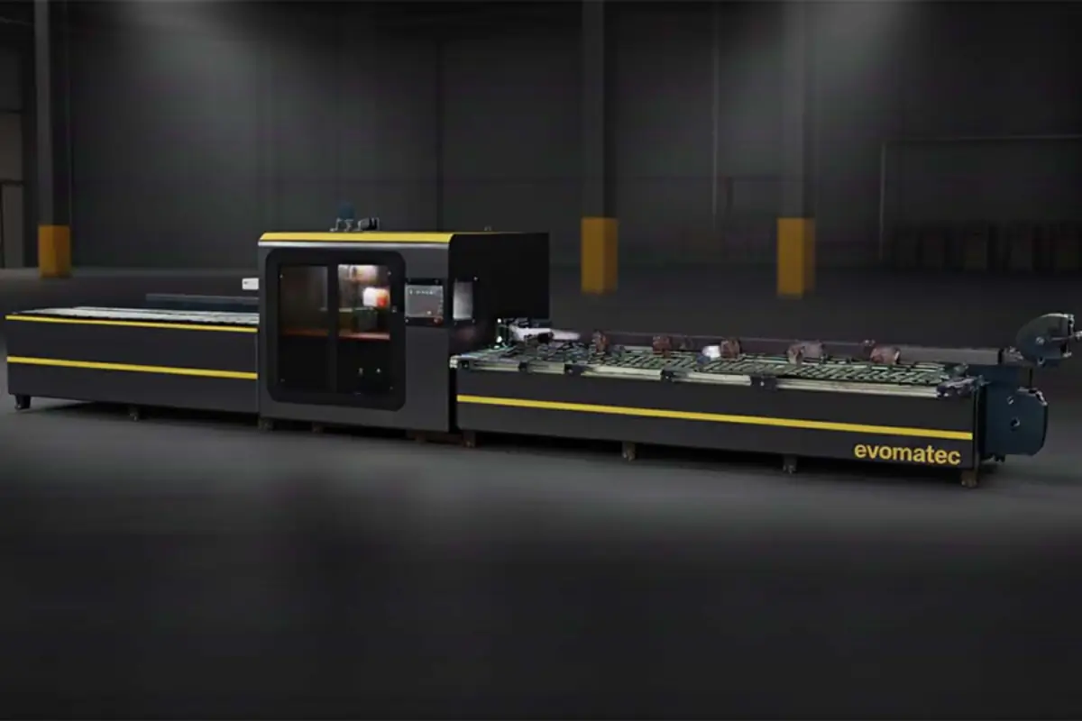 Das Stabbearbeitungszentrum EVOAIIC von Evomatec ist ein hochmodernes CNC-Stabbearbeitungszentrum für die vollautomatische Bearbeitung von PVC- und Kunststoffprofilen.