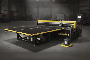 CNC-Glasschneidetisch für Flachglas – EVOGLAS II Präzision, Geschwindigkeit und Effizienz in der modernen Glasbearbeitung Der CNC-Glasschneidetisch EVOGLAS II von Evomatec ist ein hochmodernes,