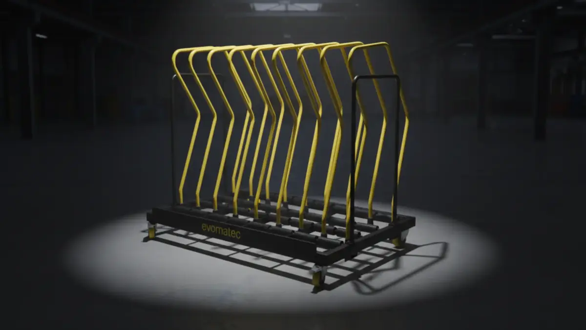 EVO TROLLEY I में आठ प्रोफाइल कम्पार्टमेंट्स हैं, जिनके बीच 145 mm का निर्धारित कम्पार्टमेंट स्पेसिंग है। यह स्पेसिंग सुनिश्चित करती है कि विंडो और ग्लास एलिमेंट्स सुरक्षित रूप से खड़े रहें और पर्याप्त दूरी के साथ स्टोर हों। परिणामस्वरूप, स्क्रैच, प्रेशर मार्क्स और एज डैमेज का जोखिम काफी कम हो जाता है, खासकर कोटेड प्रोफाइल्स, फॉइल्ड सरफेसेस या संवेदनशील ग्लास एजेस के लिए।